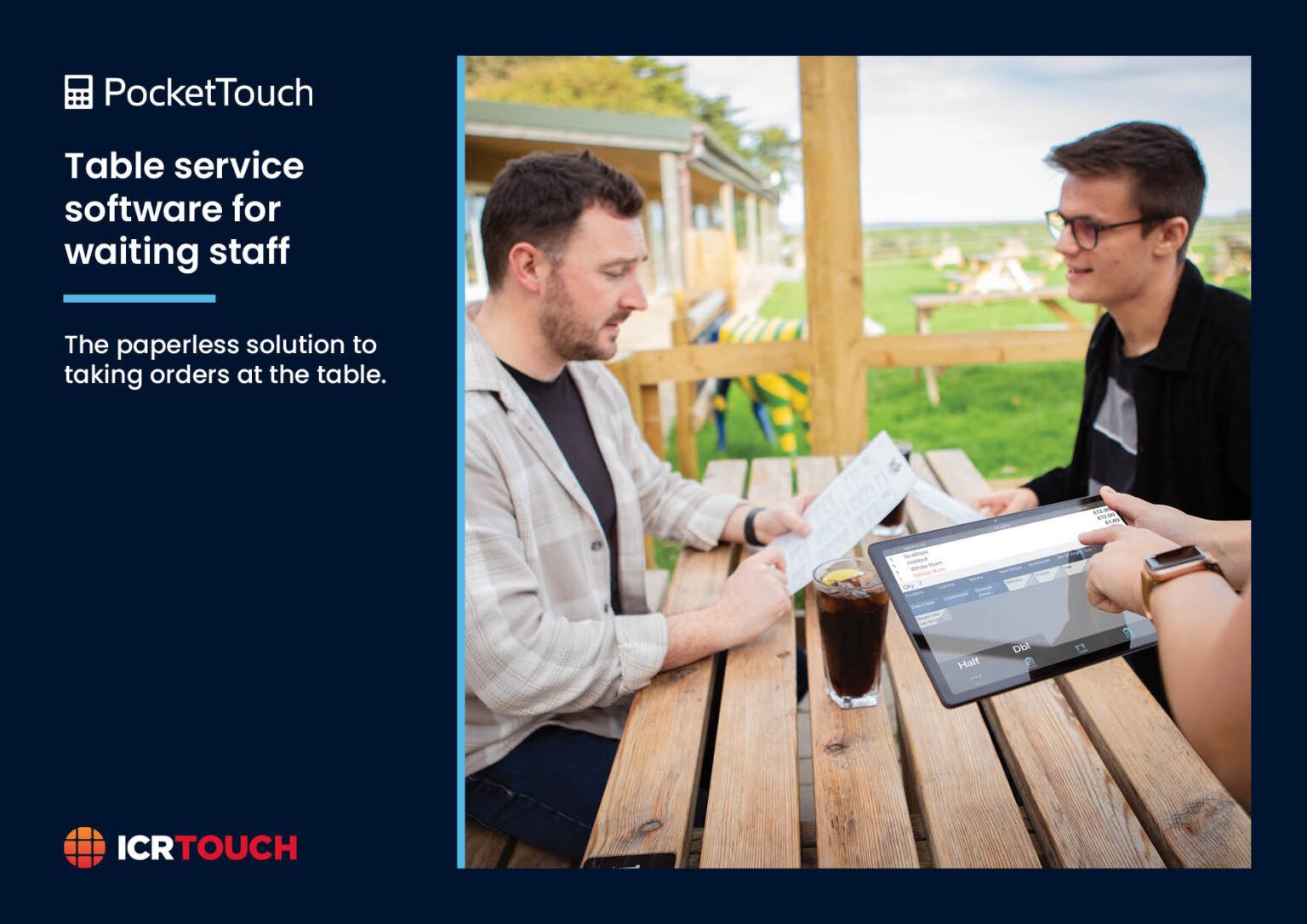 PocketTouch is a professional paper-free way to take food and drinks orders. Our revolutionary hand-held software solution has been designed and developed specifically for the hospitality and catering industries. Take orders seamlessly from table or queue, straight to the heart of the kitchen and bar, providing a quick and efficient service to the customer. Handwritten mistakes are a thing of the past and Chef can get straight on with preparing the food. Order updates made on PocketTouch are automatically updated on the bill, making the whole process more efficient. With PocketTouch you eliminate sources of disappointment, such as taking incorrect orders and running out of specials, so your customers remain happier and are more likely to spend more and visit again.